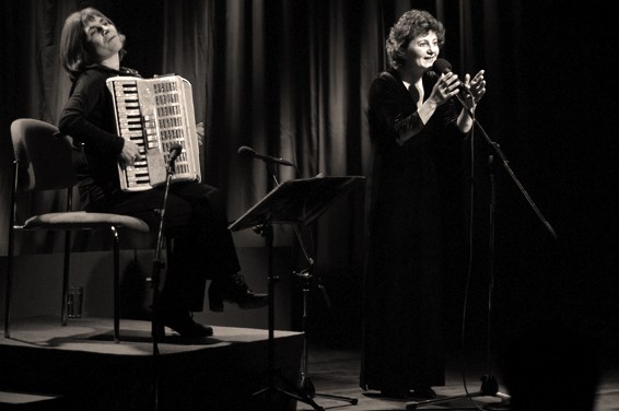 Seit über 12 Jahren präsentieren Julia Kock und Monika Schmidt-Carstens ihr Piaf-programm in den deutschsprachigen Ländern:Von Aachen bis Zürich, von Schmidts-Tivoli bis GOP-Varieté. Gekonnt führt Julia Kock ihre Stimme durch weltbekannte Chansons wie "Milord", "Je ne Regrette Rien" und "La Vie en Rose", immer präzis, auch wenn sie die Songs ihrer eigenen Stimme gemäß interpretiert. Presse und Publikum sind begeistert: "Beifall der nicht enden will", "Einfach grandios", "Unverstellt, ehrlich, musikalisch bezaubernd", "Bezaubernde Diseuse mit Sinn für Gefühl", "virtuose und einfühlsame Spiel", "Trifft mitten ins Herz". |